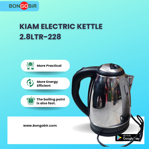 This Kiam Electric Kettle is made of durable stainless steel and has a large capacity of 2.8 liters, making it perfect for boiling water for tea, coffee, or other hot beverages. The kettle features a sleek design and is easy to use, with a simple on/off switch and a convenient handle for pouring. The Kiam-228 model is a reliable and efficient choice for any home or office.