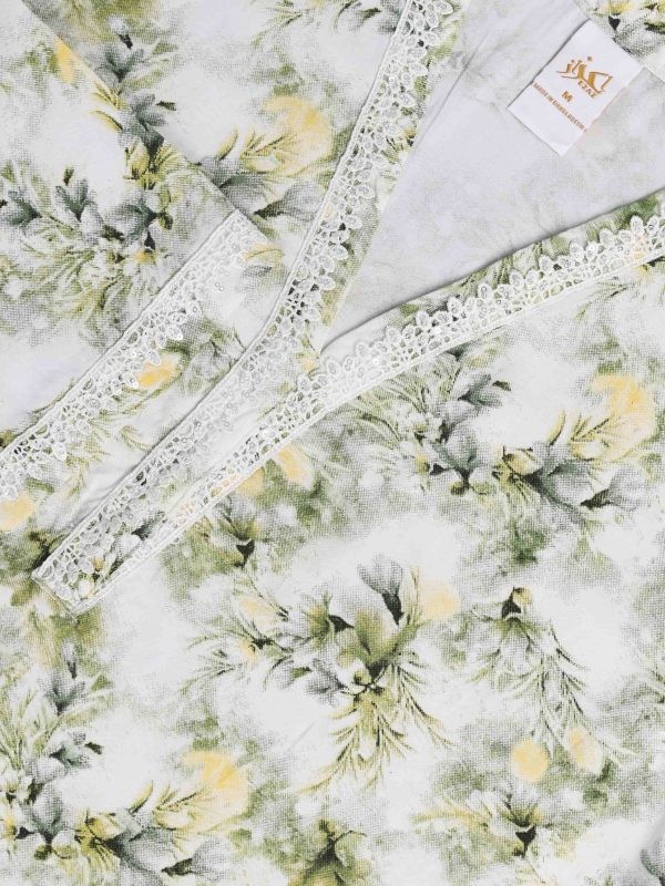 This two-piece set embodies soft elegance. Crafted from breathable cotton, its pink and red floral print adds a romantic charm. The three-quarter sleeves and detailed neckline make it perfect for summer comfort and festive elegance.