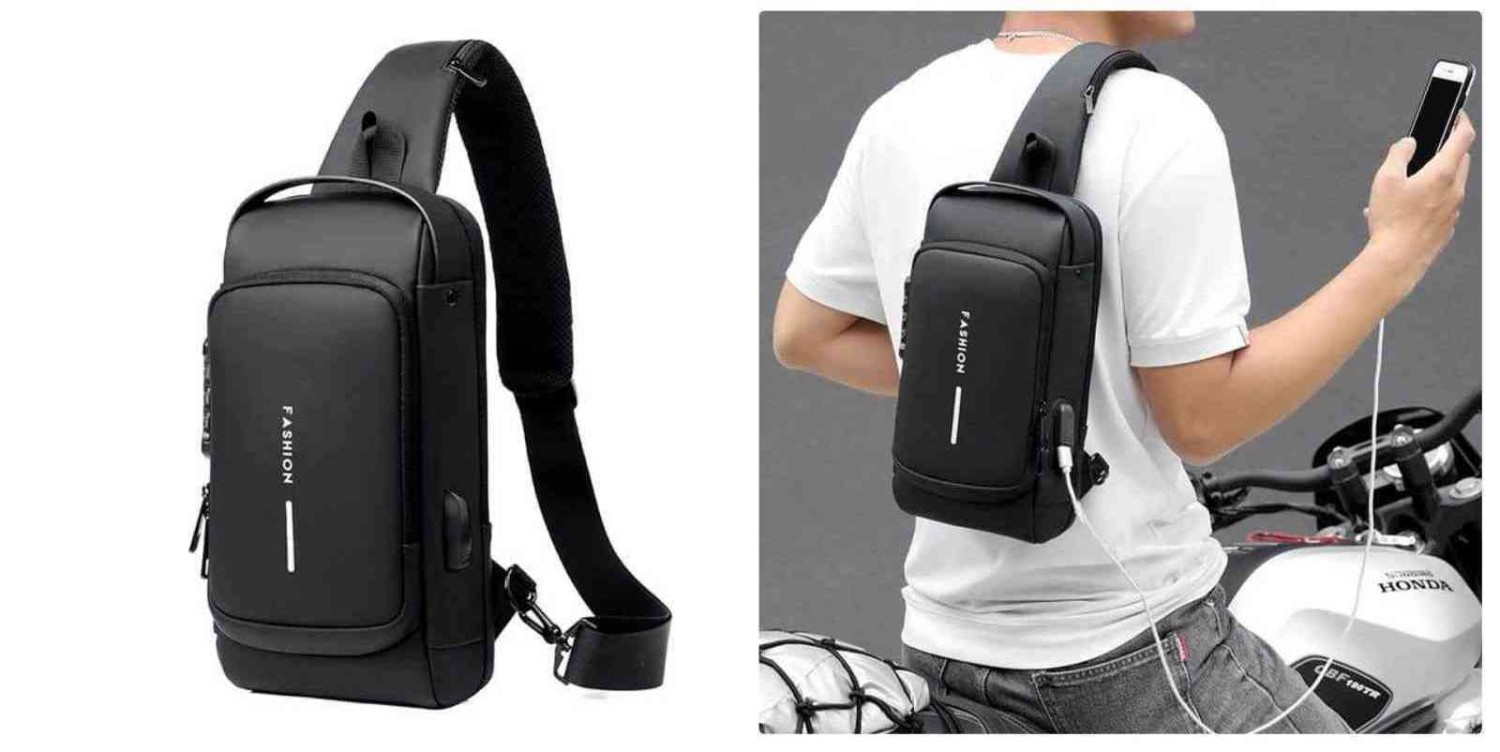 USB Fashion Charging Men Multifuntional Pu Chest Bag